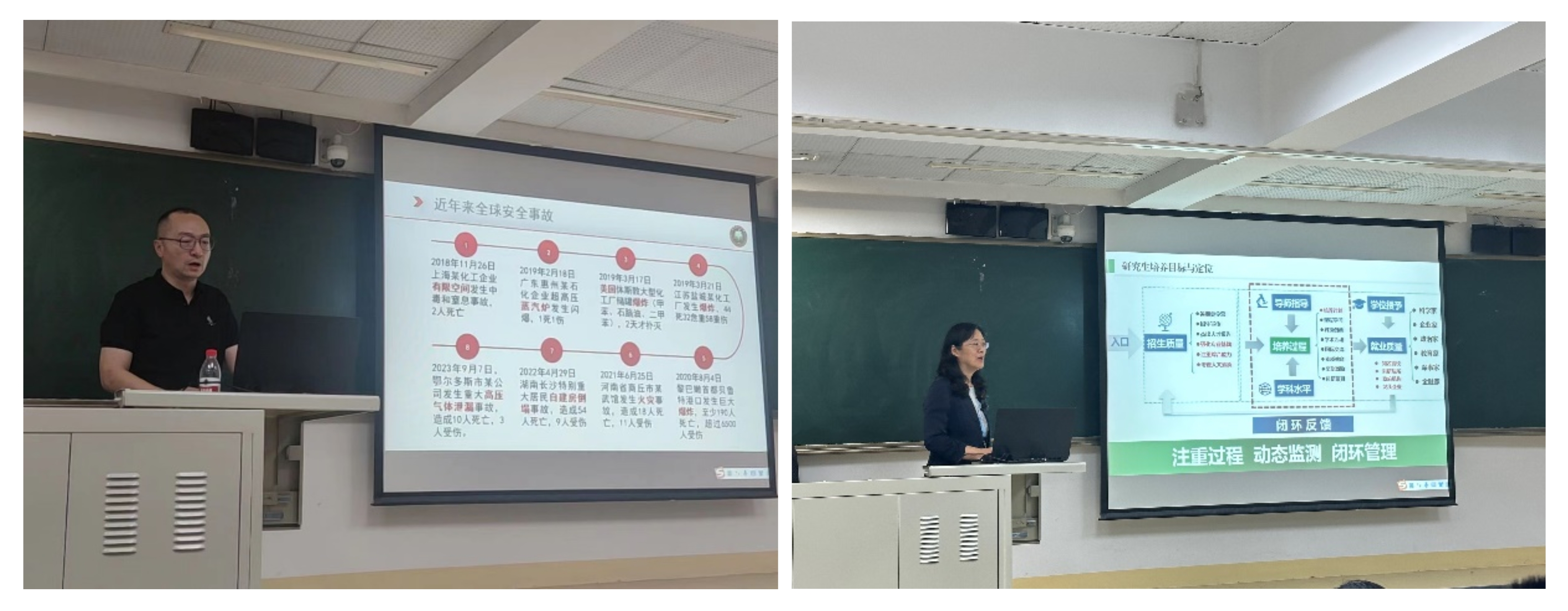 为帮助新生树立安全生产意识,熟悉研究生培养环节,适应新环境新阶段新生活,杨亚楠、王茜蒨分别以《实验室安全生产》和《研究生教育培养》为题进行了专题讲座。