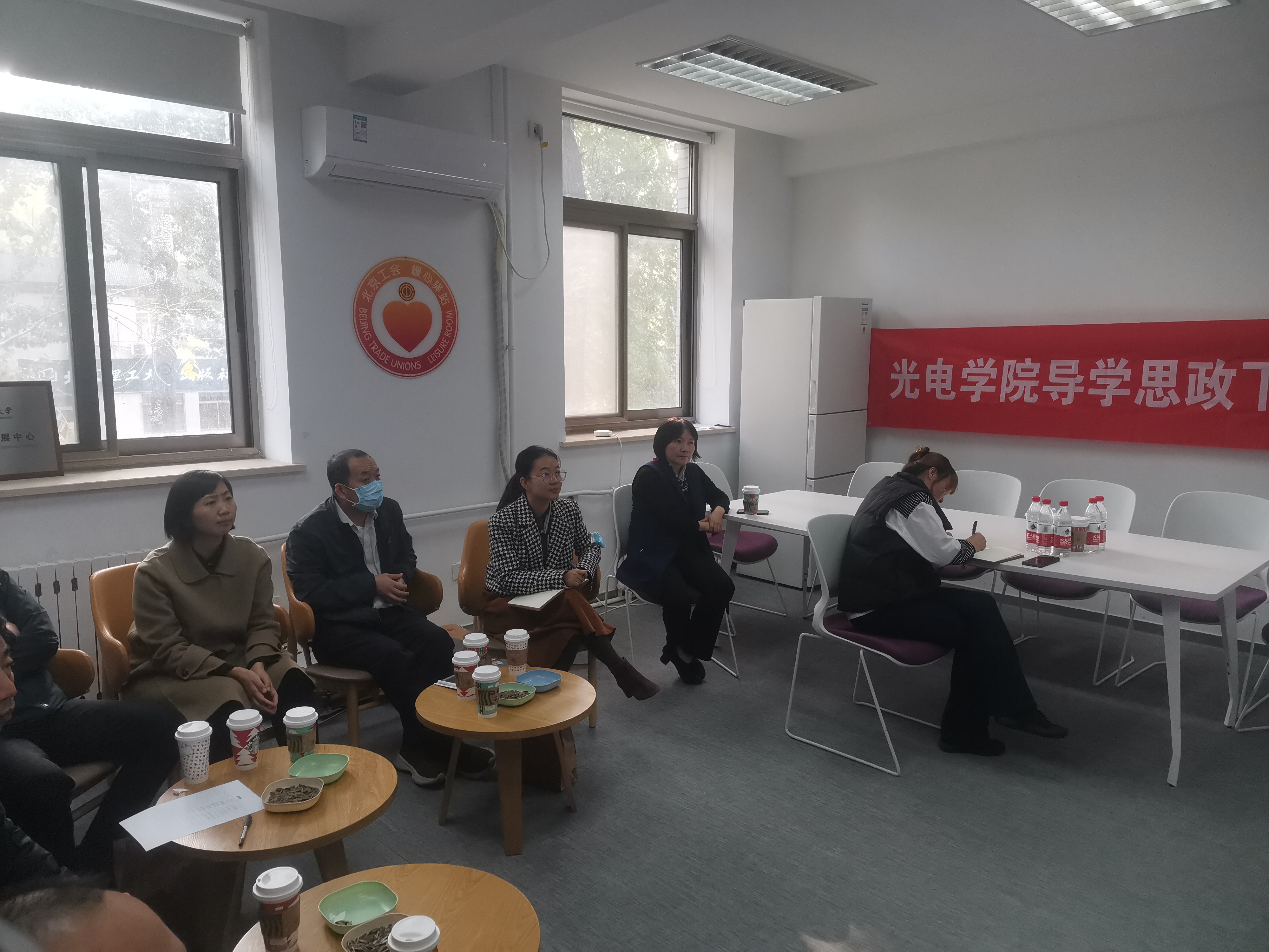 会上,盛筠代表学院感谢各位青年教师参与学育导师工作,希望通过此次活动,帮助老师们更好了解学育导师职责和要求,更好开展工作。黄一帆鼓励老师们做好课堂教学的同时,加大对学生的交流与沟通,帮助学生深入了解光电各个专业,促进学院教育教学工作开展。杨亚楠感谢各位老师的辛勤付出,希望老师们畅所欲言、互相促进。