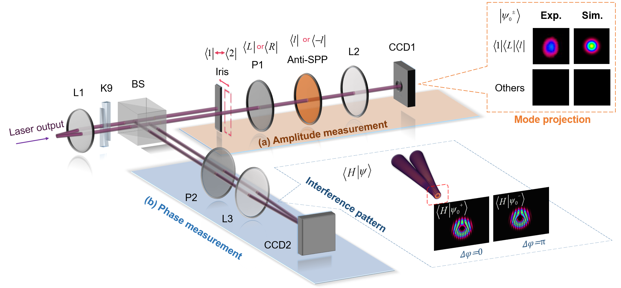 最后,该团队参考量子纠缠系统中的判定方式对所生成GHZ模拟态进行了验证,类比于量子态层析技术,结合传统自由度的投影方法以及卷积神经网络的相位分析方法,将高维光场依次投影至各个本征基底,如图2所示,测得各基底的振幅和相对相位,获取了完整的CNSS信息。