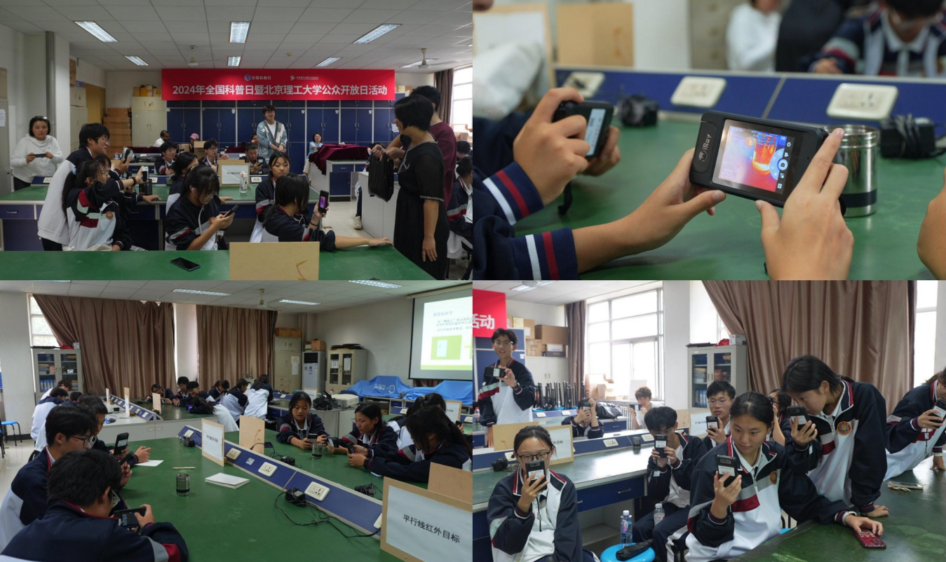 光电创新教育实验基地针对中学生掌握的知识内容,专门设计了关于红外热成像技术的科学探究课程。昌华中学的同学们将红外热像仪拿在手上,通过一系列小实验,对比探究红外热成像与可见光成像在工作波段、光学系统材料和图像显示方式等方面的不同,知晓了红外热成像技术在社会和生活中的应用优势。同时,同学们也对我国红外热成像领域曾经的落后状况和当今丰硕的自主创新成果有了深刻的感触。