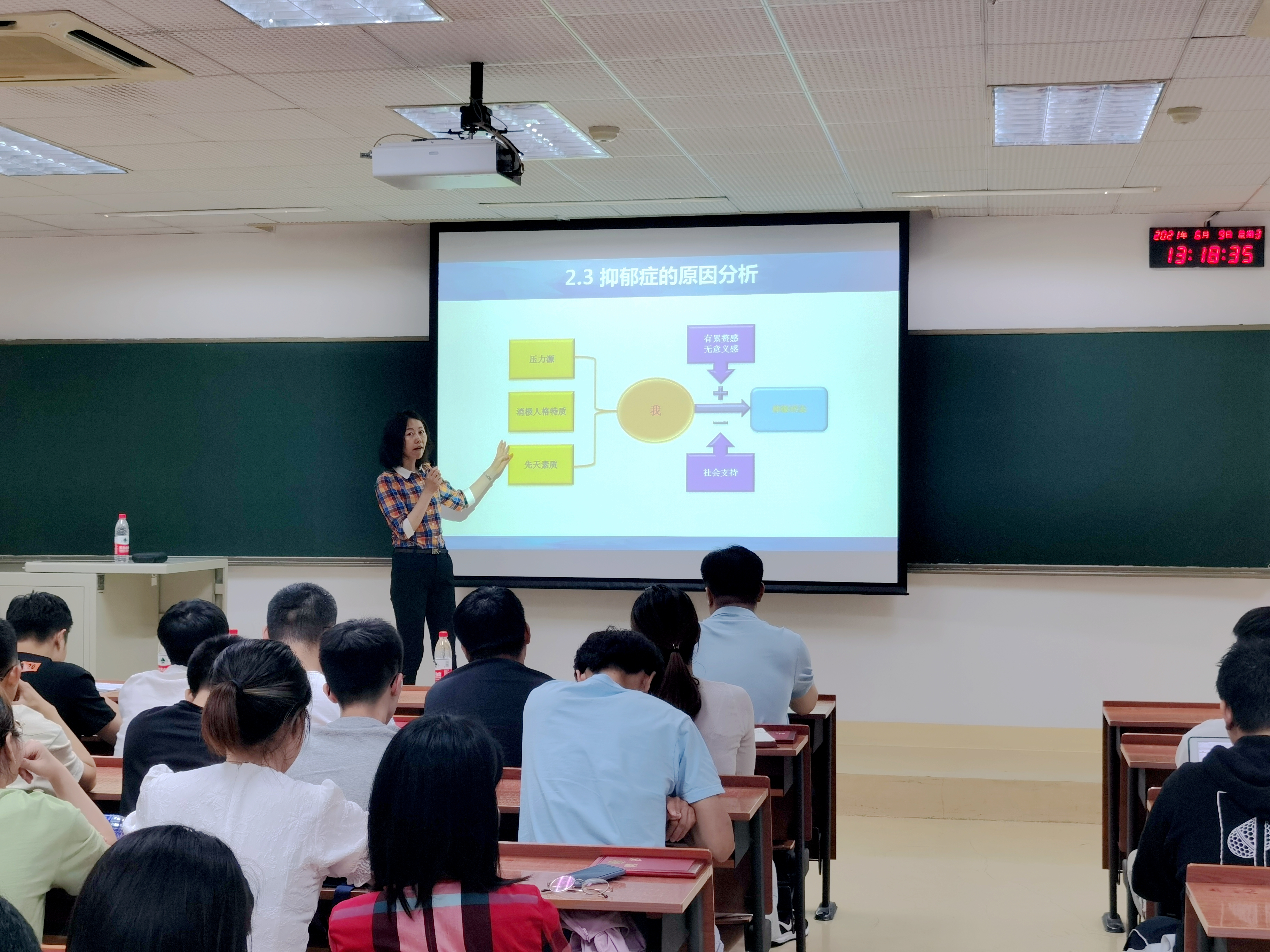 李旭珊围绕心理健康概念、抑郁症的识别与原因探析、抑郁症的干预等内容开展了深入浅出、案例生动的专题培训。