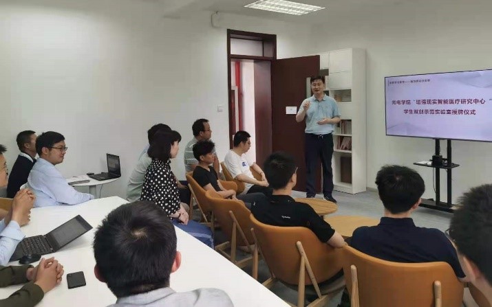 杨健教授指导学生参加科技创新竞赛连年获得“互联网+”大学生创新创业大赛总决赛金奖;获得“挑战杯”全国大学生课外学术科技作品竞赛金奖,邹锐为杨健教授所带领的“增强现实智能医疗研究中心”进行了“涩里番 学生双创示范实验室”授牌。