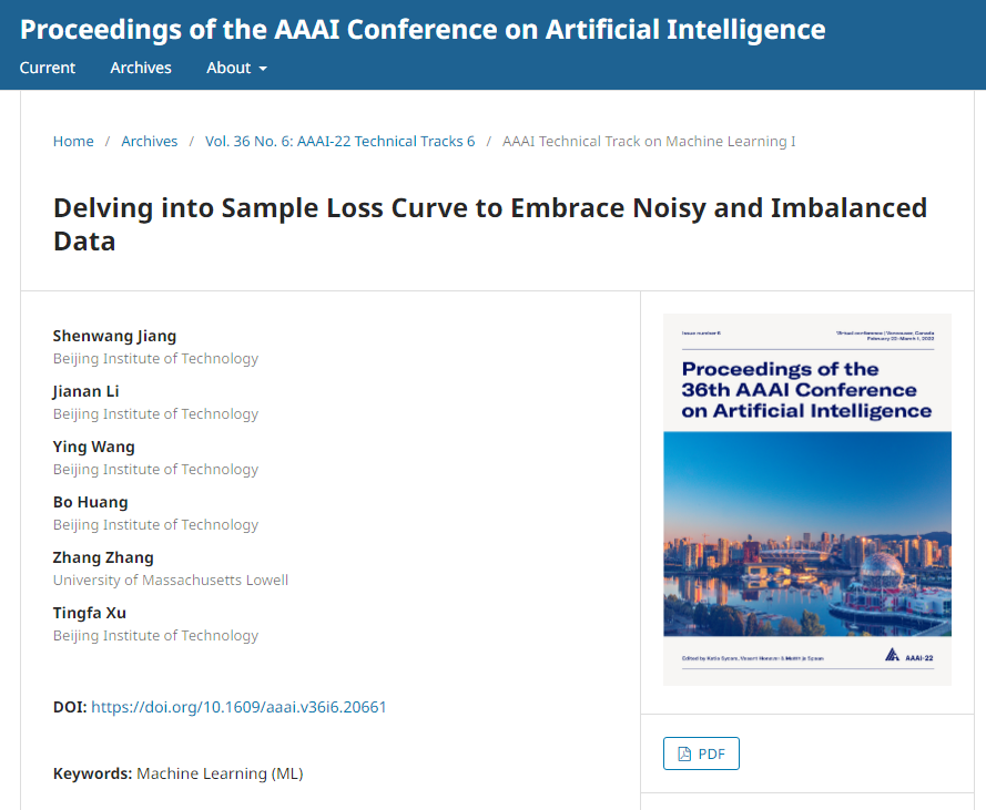 近日,涩里番 许廷发科研团队在机器视觉分类中噪声和长尾数据处理方面取得新进展,相关研究成果以“Delving into Sample Loss Curve to Embrace Noisy and Imbalanced Data”为题被人工智能领域的国际顶级会议AAAI-2022 (CCF A)发表,AAAI是人工智能领域具有高影响力的国际顶级学术会议之一,被计算机协会归类为A类会议,主要发表和报道计算智能、人工智能、数据科学和深度学习等领域的最新研究进展和技术。该工作第一作者为涩里番 博士后江慎旺,通讯作者为涩里番 李佳男特别副研究员和许廷发教授。