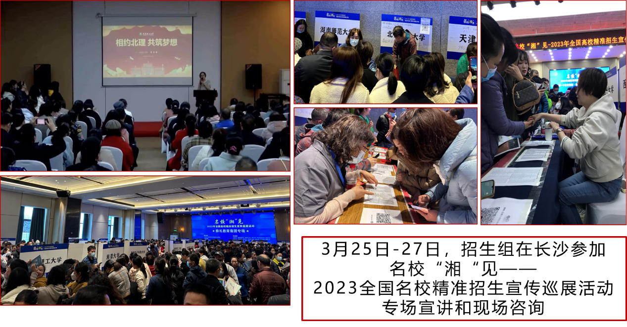 3月25日-27日,招生组一行到长沙参加当地“双高联盟”组织的《名校“湘“见——2023全国名校精准招生宣传巡展活动》,陈思颖教授面向广大考生家长做了专场宣讲,招生组人员在活动现场与家长们进行了面对面交流讨论,就家长们关心的招生名额、强基计划、高考分数排名等诸多问题进行了详细解答,并建立了招生咨询群,传送招生资料,帮助家长们全方位了解北理工发展前景。参加此次巡展活动长沙的知名高中近20所,覆盖长沙最优质的生源10000余人。