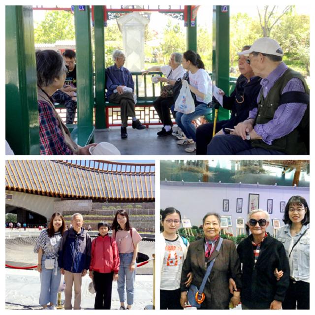 两个小时的车程不知不觉就到了,在世博园里,机关支部和学生支部分成两人一组,陪同老教师们参观园区。老教师们讲述他们青年时期在艰苦奋斗的条件下,不计得失,一心科研的故事、耐心解答同学们提出的关于学习、人生、发展等困惑,同学们深受感动,获益匪浅。