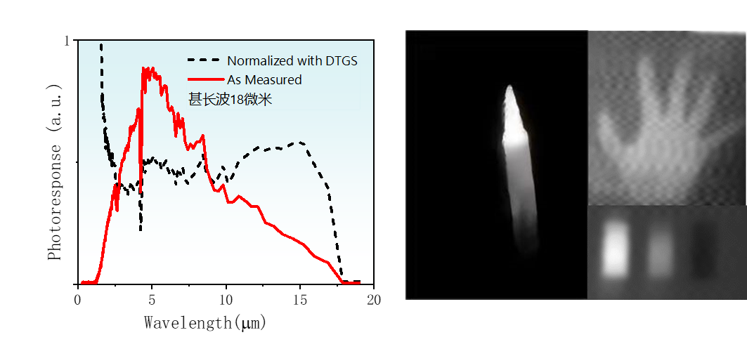 一方面,碘离子钝化降低了N型掺杂载导致的带内跃迁竞争,抑制了载流子背散射,降低了器件的暗电流及暗噪声。另一方面,短链配体交换技术,提高了量子点中载流子电学耦合强度,大幅度提升量子点载流子迁移率100倍,提高了光生载流子收集效率。该方法极大的提升了器件的性能,例如,在80K下的10微米长波红外探测器比探测率超过109Jones,响应度0.13A/W, 比现有报道提升了100倍。同时,本工作首次突破现有量子点波长探测极限至18微米甚长波红外(如图4所示),该波段独特亚稳态物性为临界量子态研究依据。