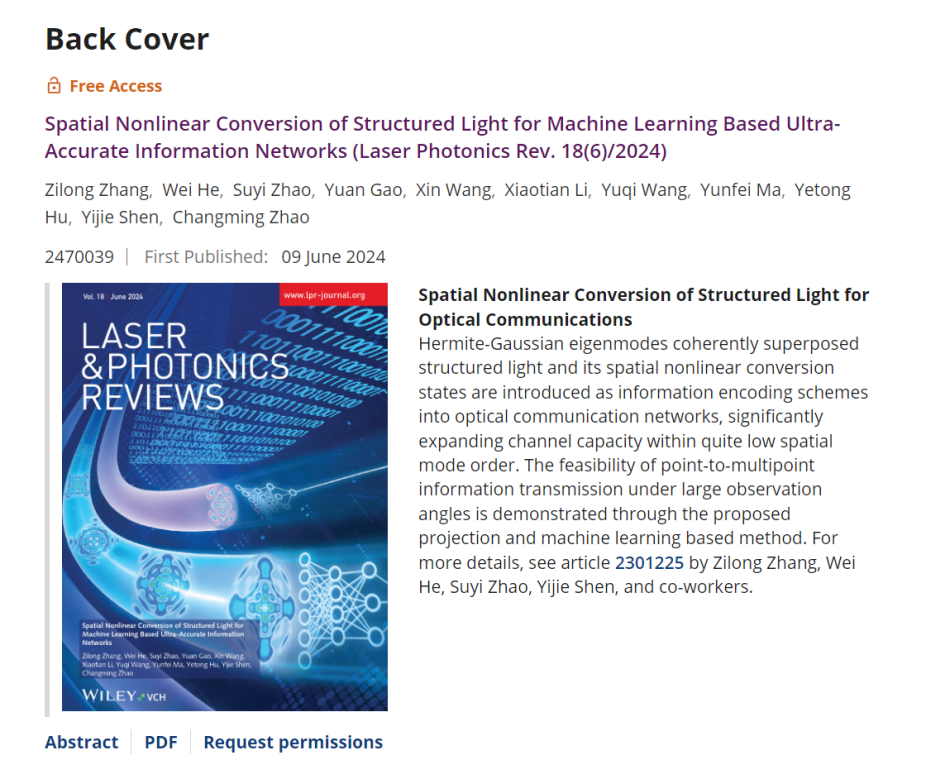 图4 论文被选为Laser Photon. Rev. 期刊第18卷第6期的Back Cover文章。