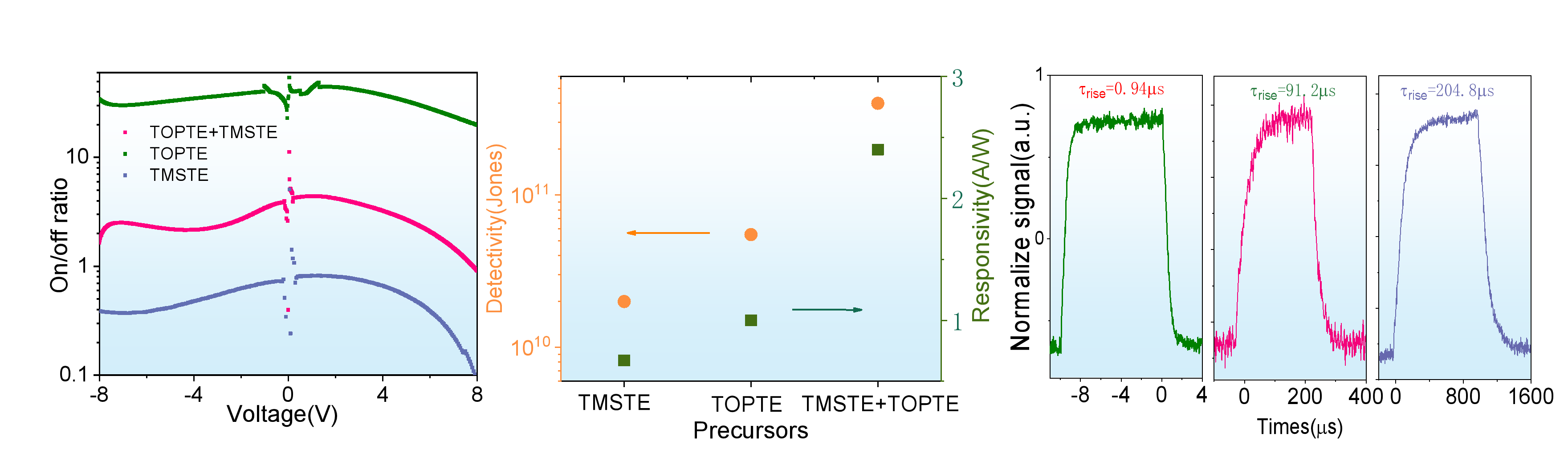 红外光电探测器广泛应用于气体传感、气象遥感以及航天探测等领域。然而目前,传统的红外探测材料主要基于碲化铟、铟镓砷、碲镉汞等,需要分子束外延方法生长,以及倒装键和等复杂工艺与读出电路耦合。虽然探测性能高,但是却受限于成本与产量。