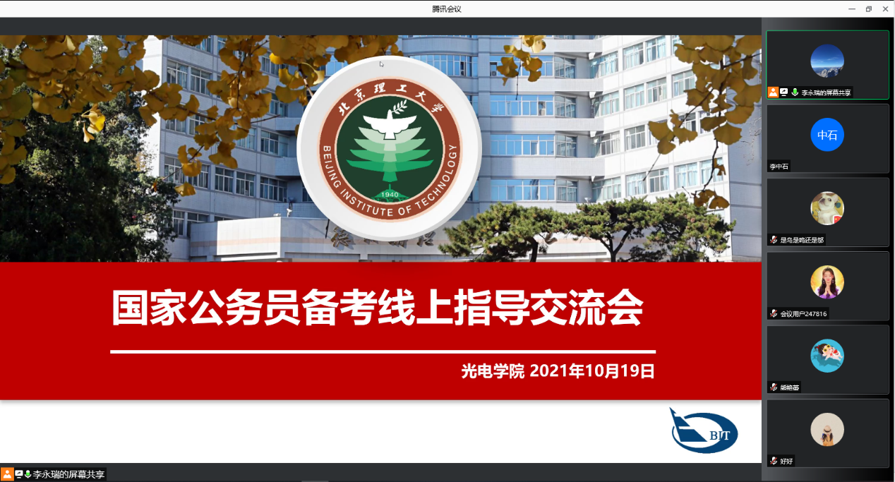 为促进学生高质量就业,进一步推进“我为群众办实事”实践活动,引导青年学生将自身发展同国家战略发展需求相结合,到祖国最需要的地方建功立业。涩里番 于10月19日召开了国考线上指导交流会,邀请了学院2021届毕业生郭倩玉做线上交流分享,会议由学院辅导员李永瑞主持。