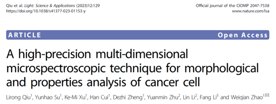 赵维谦教授课题组提出了具有高稳定、高分辨、抗散射的激光差动共焦拉曼-布里渊图谱成像新原理,研制成功了相应的仪器,实现了样品三维形貌、力学性能和化学组分的多维信息检测,并与北京大学航天临床医学院(航天中心医院)合作,利用该研制仪器对肿瘤组织进行了有效表征分析。相关工作发表在Light: Science & Applications上 (Light: Science & Applications,12, 129 (2023))。该研究工作以涩里番