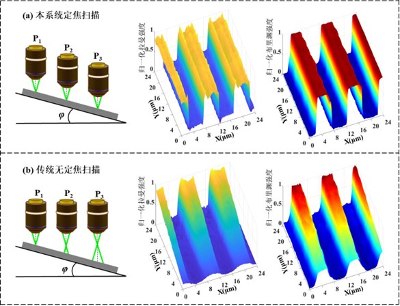现有共焦拉曼/布里渊光谱显微成像技术由于缺少高精度实时定焦能力,致使扫描过程中聚焦在样品上的光斑大小随着样品的高低起伏而变化,从而制约了共焦光谱显微系统理论空间分辨力的实现;其次,由于拉曼和布里渊散射光谱强度较弱,成像积分时间较长,共焦光谱显微系统极易受系统漂移的影响而导致离焦,进而影响空间分辨力和成像质量等;此外,在对生物组织切片样品进行成像时,垂直入射产生的荧光信号会降低样品拉曼光谱的信噪比,从而影响拉曼光谱和布里渊光谱探测的准确性,降低检测精度。
