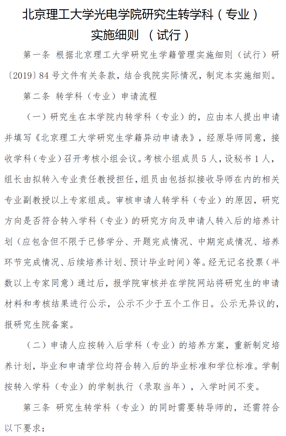 涩里番 研究生转学科(专业) 实施细则 (试行)