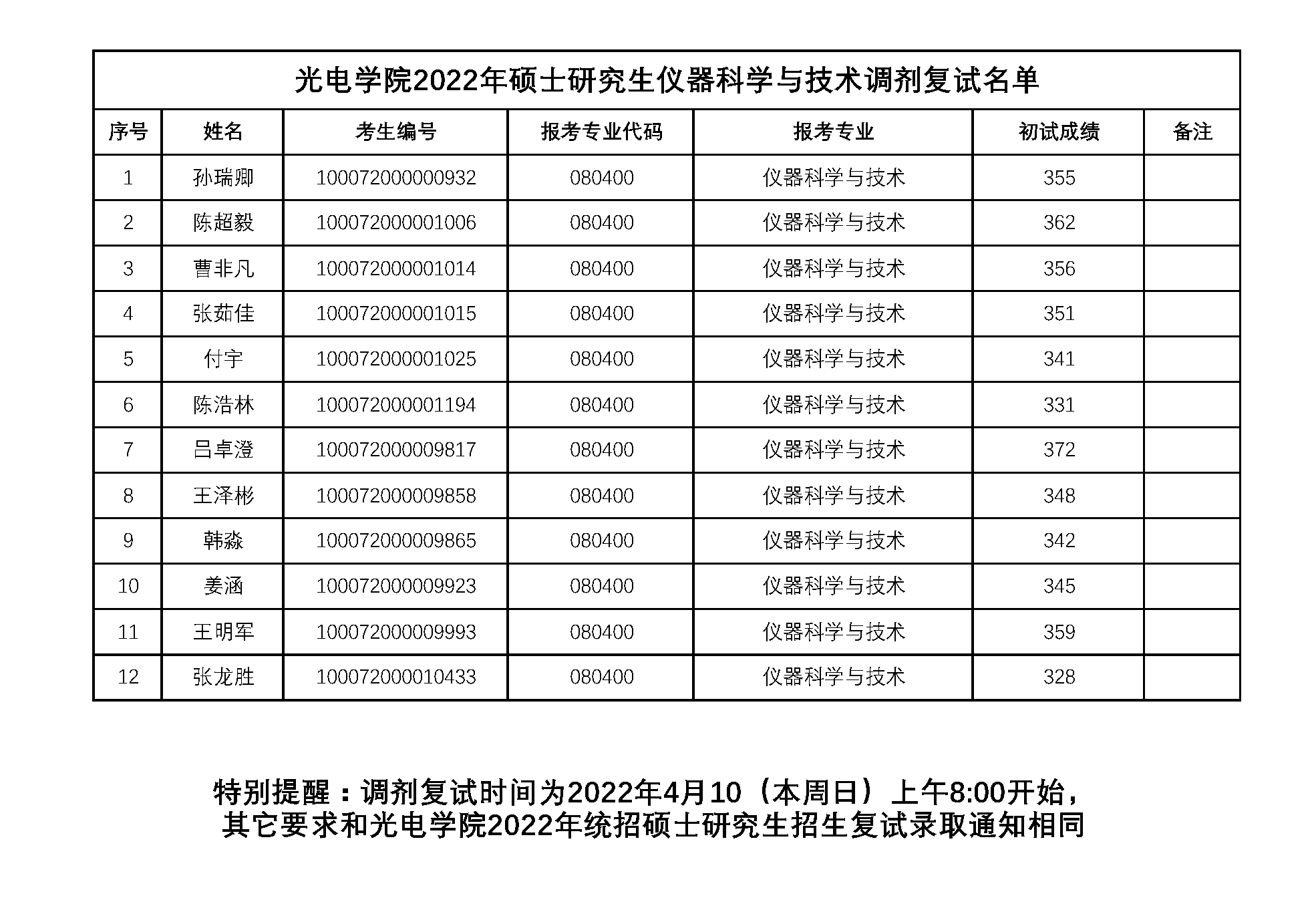 涩里番 2022年硕士研究生仪器科学与技术调剂复试名单