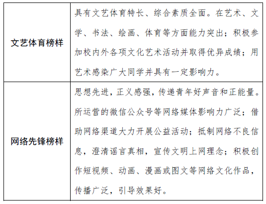 每个榜样类别不超过2人