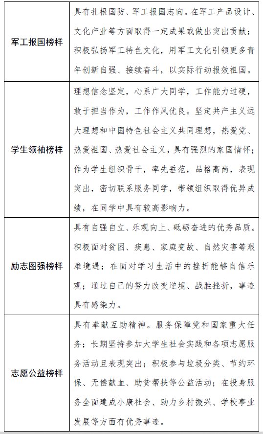 为深入学习贯彻习近平新时代中国特色社会主义思想,认真贯彻落实党的二十大精神和习近平总书记关于青年工作的重要思想,围绕党和国家“十四五”时期经济社会发展重大战略部署,牢牢把握立德树人根本任务,着力培养担当民族复兴大任的时代新人,进一步激发新时代北理工青年的责任感使命感,校团委决定在全校范围内选树、宣传、表彰一批“胸怀壮志、明德精工、创新包容、时代担当”的先进青年典型,引领广大青年学生树立远大理想、热爱伟大祖国、担当时代责任、勇于砥砺奋斗、练就过硬本领、锤炼品德修为。现将“第十二届‘青春北理’年度榜样”评选活动相关工作通知如下。